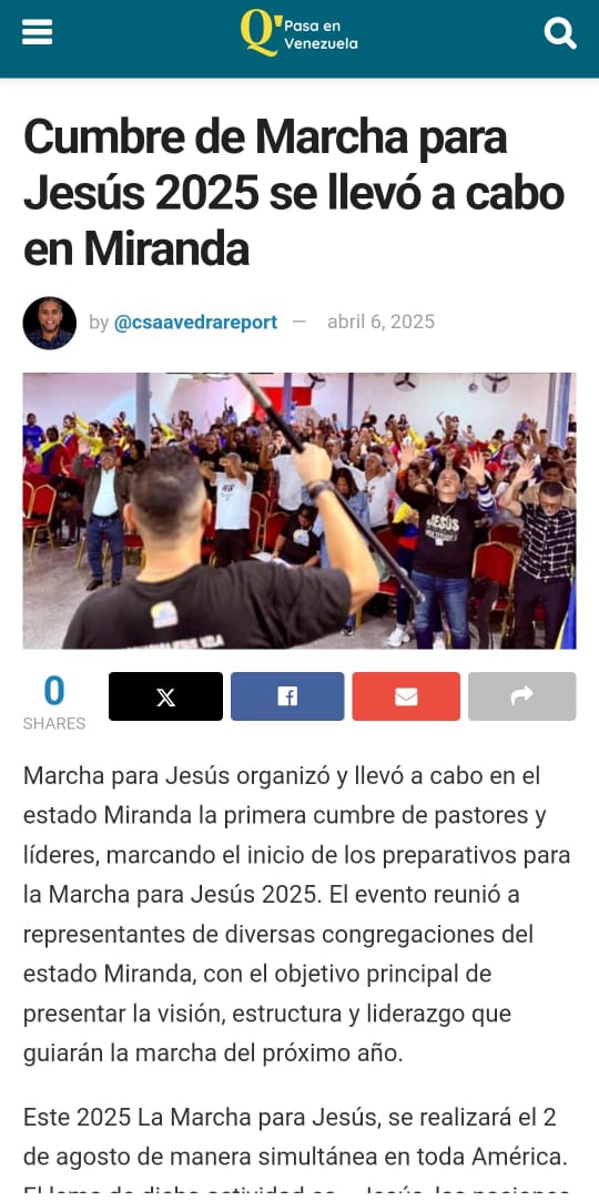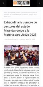Esta cumbre tuvo un matiz histórico, ya que se presentó la nueva visión de este año: por primera vez, Venezuela marchará el sábado 2 de agosto de 2025, uniéndose de forma simultánea a millones de personas en toda América Latina y el mundo. Bajo el lema «Jesús, las naciones te pertenecen», los pastores de Miranda trazaron la estrategia para transformar cada avenida del estado en un río de adoración y júbilo.