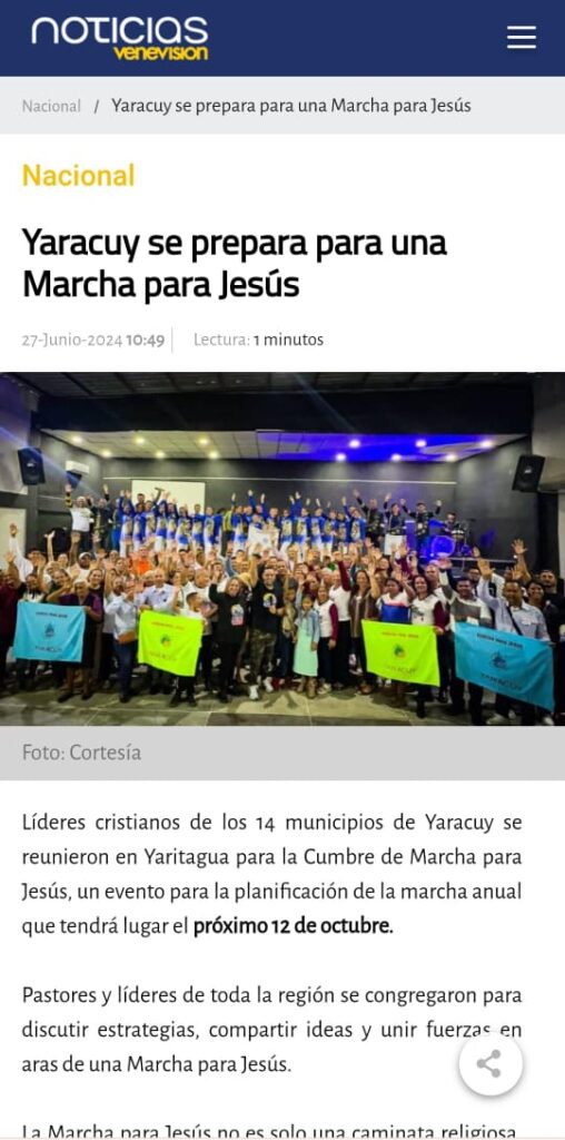 Aragua se prepara para marcar un hito en la historia espiritual de Venezuela El estado Aragua, corazón del centro del país, ha encendido los motores de la fe. Con la asistencia de más de 400 pastores y líderes regionales, se llevó a cabo una extraordinaria cumbre de planificación y unidad, estableciendo la hoja de ruta […]