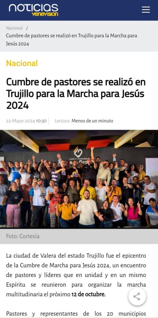 El estado La Guaira, con su brisa marina y el calor de su gente, ha dado un paso firme en la ruta espiritual de este año. En un ambiente de profunda comunión y entusiasmo, se llevó a cabo la Cumbre de Pastores y Líderes Principales de La Guaira, consolidando la organización para la Marcha para […]