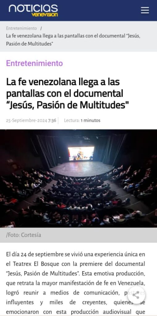 Un hito histórico: La fe venezolana conquista la pantalla grande
