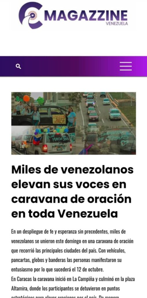 Venezuela se estremeció bajo un mismo clamor. De oriente a occidente y de norte a sur, miles de ciudadanos se volcaron a las calles en una Gran Caravana de Oración sin precedentes. No se trató solo de vehículos recorriendo las ciudades, sino de un pueblo unido que decidió levantar un altar de intercesión móvil por la paz, la familia y la restauración de nuestra tierra.
