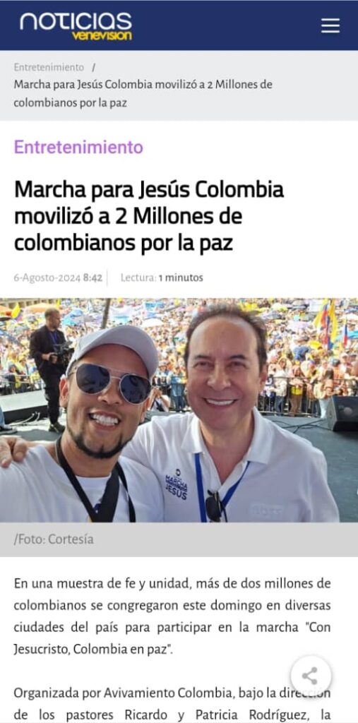 Esta movilización multitudinaria, inspirada en la visión de unidad que ha caracterizado a la Marcha para Jesús en Venezuela, demostró que cuando el pueblo de Dios se une, el mensaje de esperanza resuena con más fuerza. Desde las grandes avenidas de Bogotá hasta las localidades más remotas, el rugido de millones de voces proclamó una sola verdad: Colombia le pertenece a Cristo.